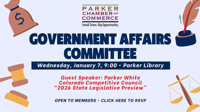 The Government Affairs Committee (GAC) is the advocacy committee of the Parker Chamber of Commerce. We meet monthly to discuss issues at the local, county, and state levels that impact business.