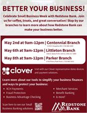 Celebrate Small Business Week with Redstone Bank and discover how we can help take your business to the next level! Whether you’re just getting started or looking to grow, our team is here with expert advice, tailored financial solutions, and a passion for helping local businesses succeed. Stop by to connect, learn, and see how Redstone Bank makes banking better for small business.